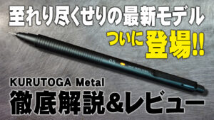 続きましてuni クルトガメタル。人気の新商品ですね。かっこいいデザインとロマンあふれる内部機構。これからガンガン使っていきたいシャーペンです。こちらは過去にレビュー動画を出しています。